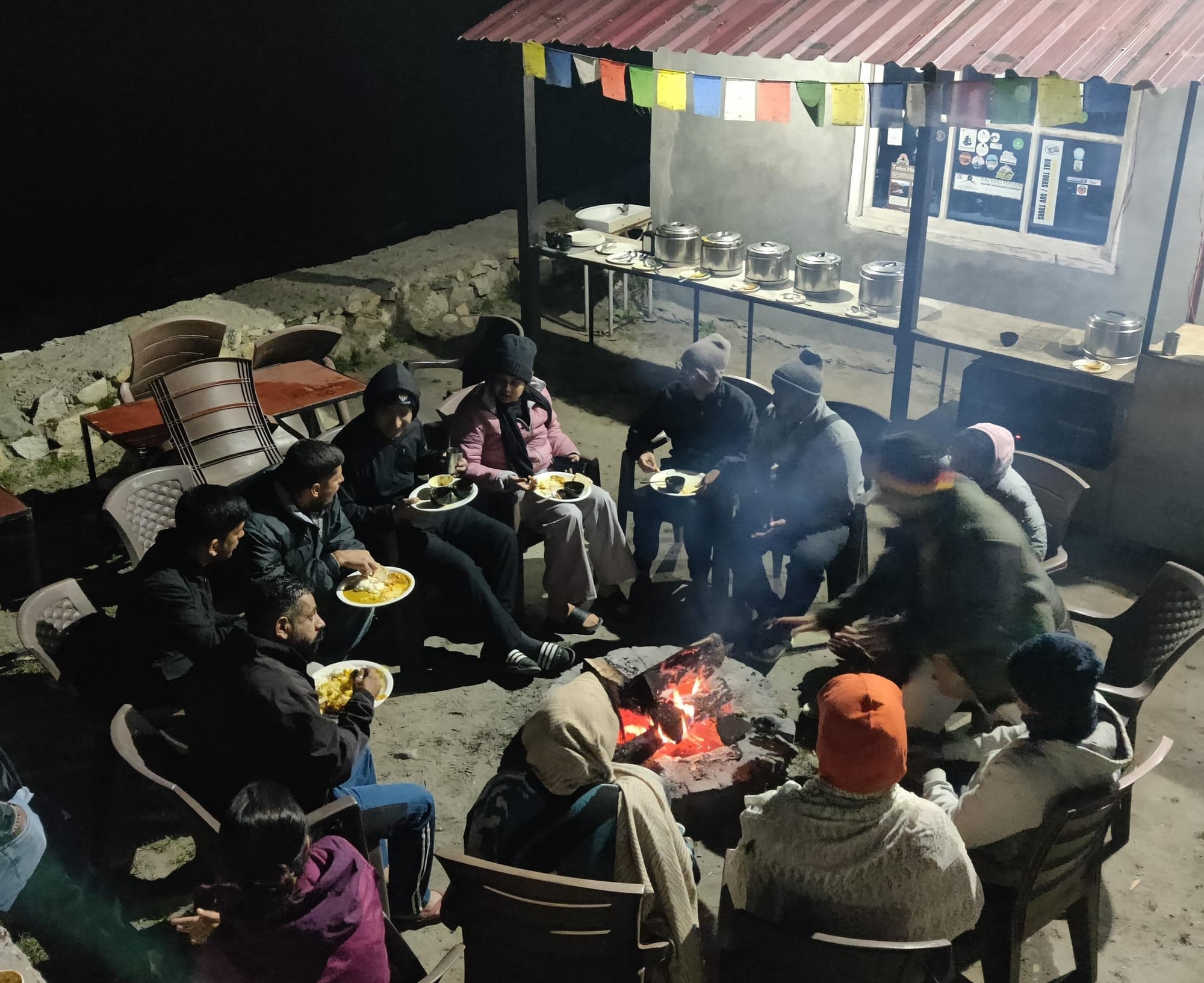 The route itself was a marvel. Chitkul, Nako, Tabo, Kaza, Chandratal, Sissu, and Manali each offered a distinct slice of Spiti’s character, from the serene villages perched high on cliffs to the vast, open landscapes where the horizon seemed to stretch endlessly. At Chitkul, the group stayed in Nargu Camps, a highlight of the trip. The tents were cozy, the food delightful, and the environment immersive. Evenings were spent around small fires, sharing experiences from the day, while the crisp mountain air and distant peaks provided a silent, majestic backdrop.