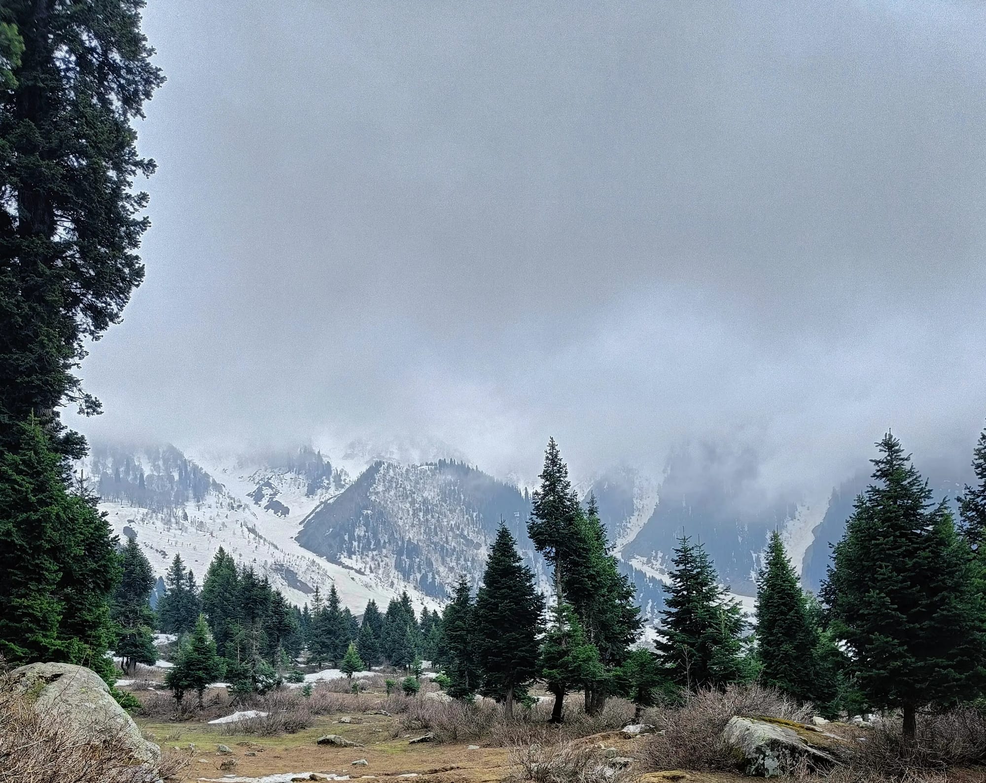 At Gulmarg, Vipin admired the gentle slopes and open meadows. The Gondola ride, one of the highest in the world, took him high above the valley. The surrounding peaks stood tall, carrying snow that glowed softly even under cloudy skies. The views stretched far, and every passing cloud added depth to the scenery.